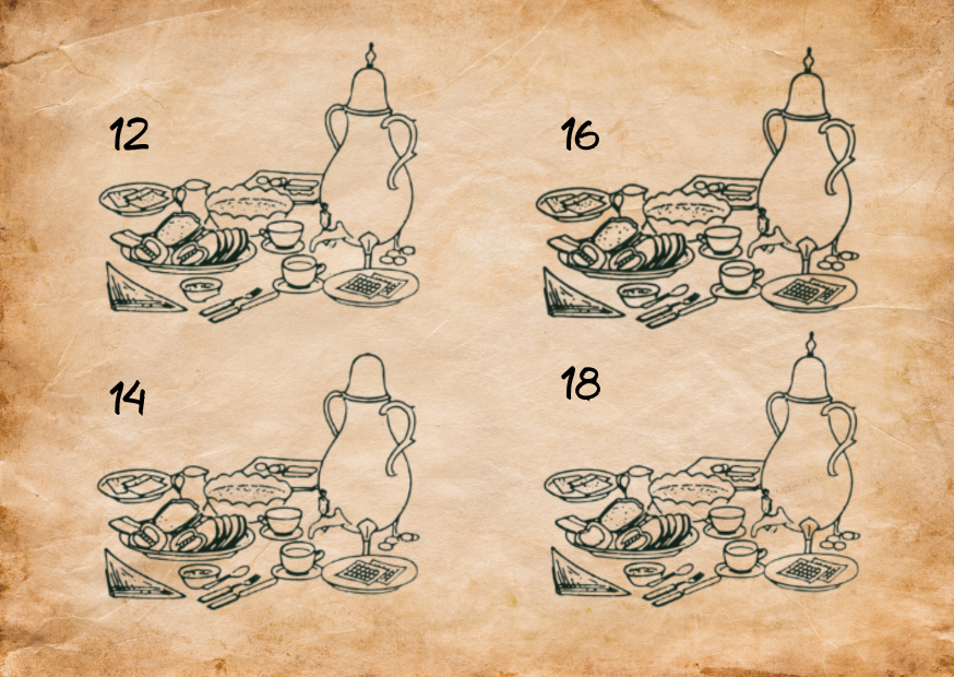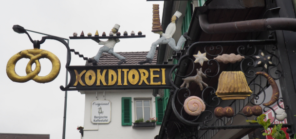 Geht weiter geradeaus, bis ihr vor dem Restaurant "Zur schönen Aussicht" steht. Findet das Abbild der Bergischen Kaffeetafel, die an dem Fahrrad angebracht ist. Öffnet jetzt meinen Brief 1 (hier klicken) aus den wichtigen Utensilien. Dort findet ihr vier verschiedene, gespiegelte Darstellungen. Vergleicht die vier Abbildungen mit dem Original und findet die, die exakt mit der am Fahrrad übereinstimmt. Das ist der Schlüssel zum nächsten Rätsel.