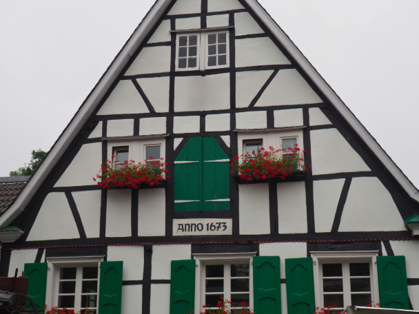 Geht zurück und überquert die Straße vorsichtig an der Ampel. Dann geht ihr den Berg wieder hinunter, bis ihr das alte Fachwerkhaus mit der Jahreszahl ANNO 1673 seht.