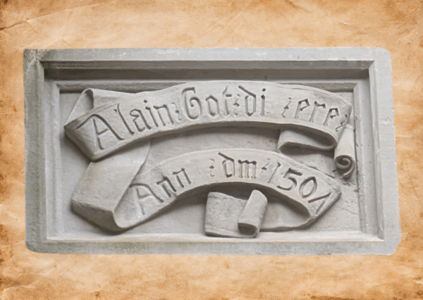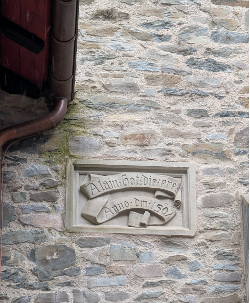 Das nächste Bild in meinem Tagebuch zeigt das Haus, vor dem ihr gleich steht. Dieses Haus ist auf den Grundmauern eines Gebäudes entstanden, an dem Engelbert geheime Botschaften über die Familienehre und das Bündnis zwischen den Familien hinterließ.