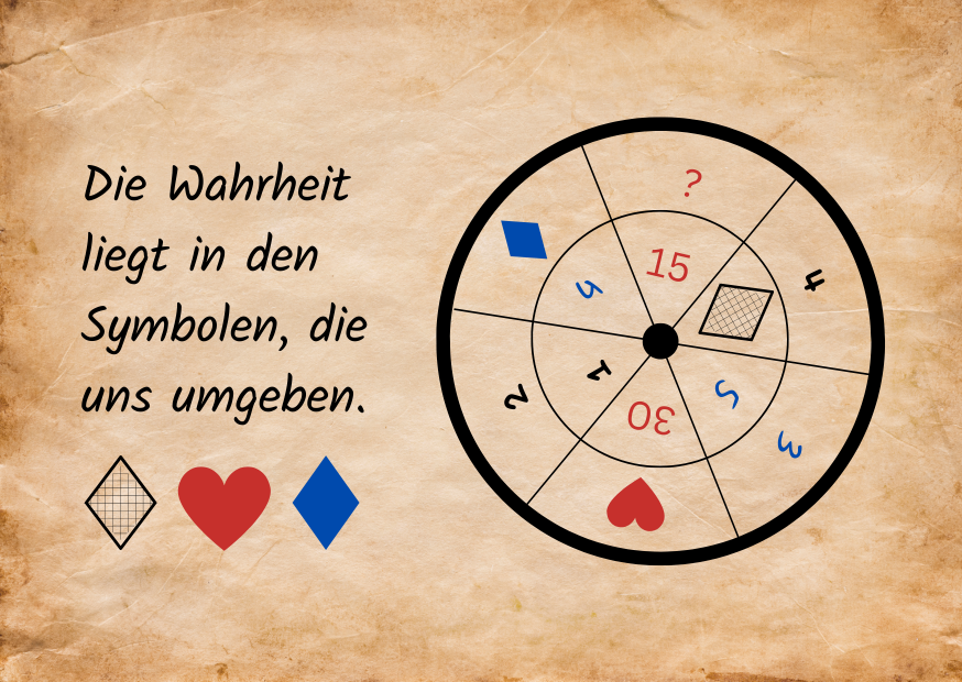 Engelbert hat auf dem Schild dieser Konditorei einen weiteren Hinweis hinterlassen, der uns zum nächsten Ziel führen wird. Vergleicht die Symbole in meinem Tagebuch mit den Symbolen, die auf dem Schild der Konditorei abgebildet sind. Es gibt ein Symbol, das dort nicht hingehört. Dieses Symbol ist ein Zeichen der dunklen Mächte. Findet das Symbol, das nicht auf dem Schild zu finden ist, und merkt es euch. Es ist der Schlüssel zu eurem nächsten Rätsel und ein weiterer Schritt, die Burg vor der Zerstörung zu bewahren. Wir müssen schnell sein, denn das Böse wartet nicht.