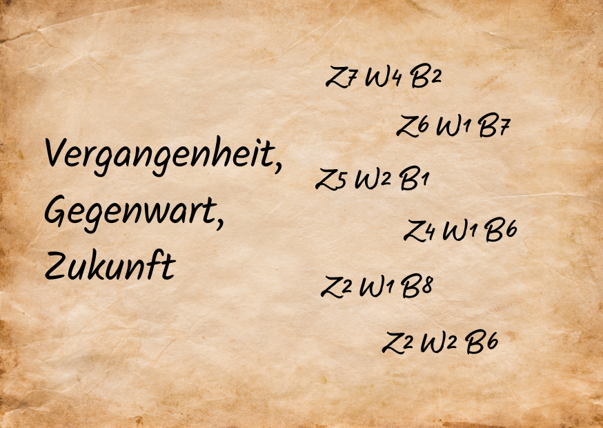 Jede Zeile beginnt mit einem Z für Zeile, W für Wort und B für Buchstabe.