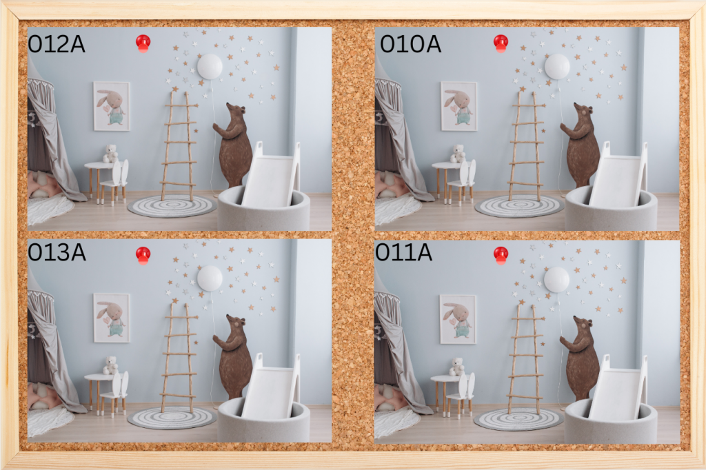 Welches der vier Fotos ist identisch mit dem originalen Foto des Kinderzimmers im Rätselbuch?