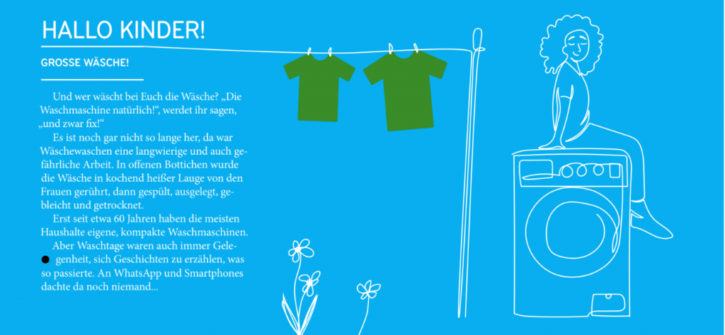 Am Wäschehaus steht eine Informationstafel. Darauf könnt ihr dieses Bild sehen.